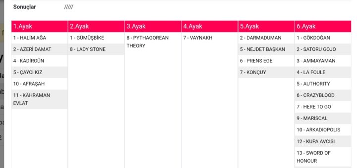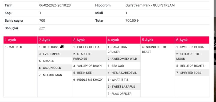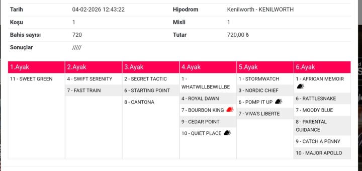 0 Tahminler 03 Şubat 2026 Will Rogers 1 1,4,5,7 8,7,4//2,6//1 2//3,7,4 5 3,8,5,1,2,6,/7 8 672 lira tahmindir. bol şanslar.
