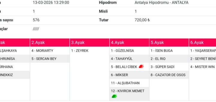 1.) DREAM CHASER 2.) 5-2-1-11-8– 3.) SPEEDY BOSS 4.) 4-5– 5.) 2-1-5-8– 6.) BODEXCEPTIONAL Kupon. 50 TL Bol şans.