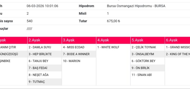 0 Tahminler 06 Mart 2026 BURSA…. 7-8 3..bu gruptan fazla olduğuna inandığım,Start problemine rağmen riske değer tek.Şayet çıkarsa 5-6 boy kalması handikap değil kanısındayım 4-7-12-8-10 1-5-2 3-10-6-2-9 2-7-1-4 750₺